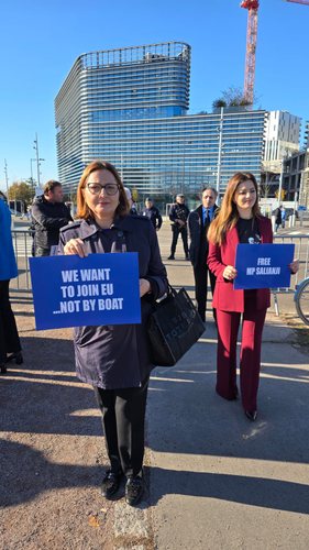 Ajo që nuk kuptohet, është kundër kujt protestojnë para Parlamentit Europian dhe çfarë kërkojnë nga eurodeputetët, se askush nga eurodeputetët s’ka fuqi t’u lirojë nga burgu Salianjin dhe Berishën!