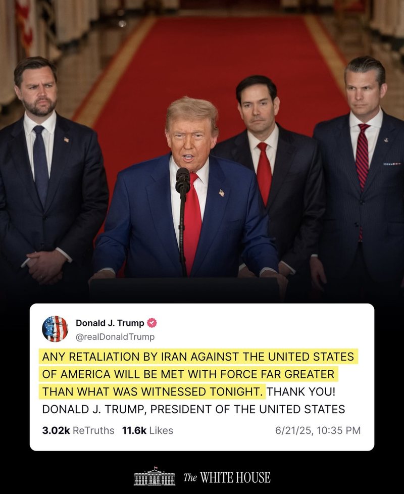 Ambasada e SHBA në Tiranë ka shpërndarë mesazhin e presidentit Donald Trump, pas sulmeve të forcës ajrore amerikane ndaj tre objektivave bërthamore të Iranit.