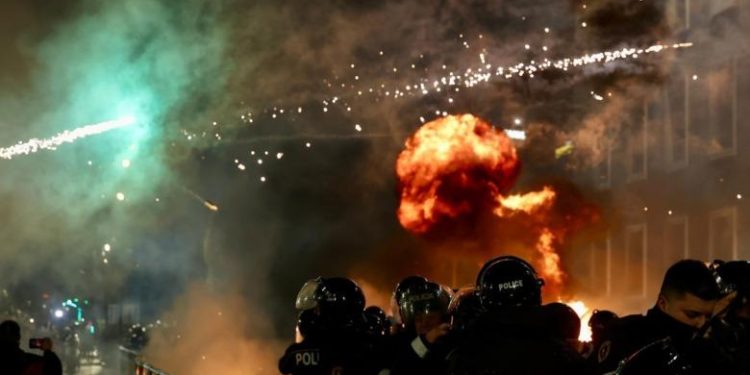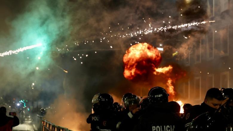 Ndërkohë që Berisha ka mbyllur fjalën, janë ndezur fishekzjarret dhe molotovi dhe është gjuajtur me to në drejtim të kryeministrisë.