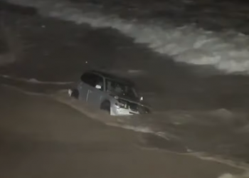 Një shofere ka përfunduar në det bashkë me makinën e saj gjatë një ndjekjeje nga policia. Videoja tregon makinën duke...