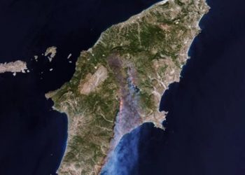 Madhësia e shkatërrimit nga zjarri i madh në Rodos u kap nga sateliti evropian Sentinel-2 i përdorur nga programi Copernicus...