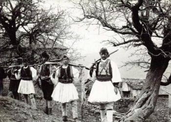 Janë tre burra të Çamërisë në Janinë të veshur me fustanellë. Fustanella shqiptare është veshja më karakteristike e shqiptarëve, të...