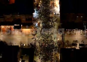 Report Tv sjell pamjet me dron nga bulevardi “Dëshmorët e Kombit”, pika e parë ku u pozicionua protesta e Partisë...