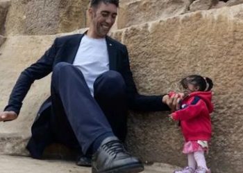 Sulltan Kosen nga Turqia, njeriu më i gjatë në botë, takoi në Irvine, Kaliforni, Jyoti Amge nga India, e cila...