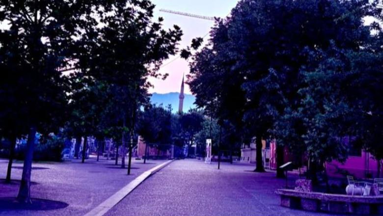 Rënia e agimit mbi kryeqytetin shqiptar me një ‘pëlhurë’ të purpurtë. Një shkrepje që dukej e bërë nga këndi i PS-së dhe që shihte Tiranën nga Xhamia dhe përreth, me pyllin orbital.