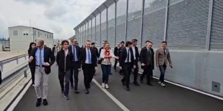 Një delegacion i partisë Fratelli d’Italia, forca politike e kryeministres italiane Giorgia Melonit, qëndroi sot disa orë në Gjadër të Lezhës për të verifikuar funksionimin e kampit të emigrantëve i ngritur sipas një marrëveshjeje mes qeverisë shqiptare dhe asaj italiane që fillimisht parashikonte pritjen e emigrantëve që kapeshin në det deri në riatdhesimin e tyre.