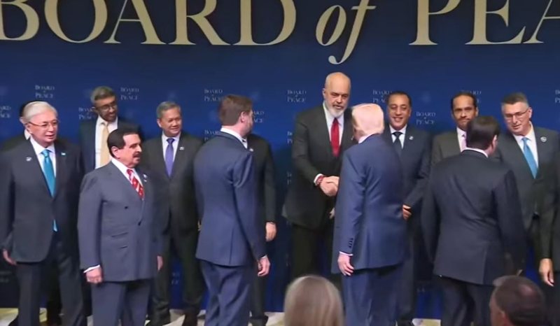 Trump shtrëngoi duart me Ramën, ndërsa bëhej foto familjare, në prag të mbledhjes inauguruese të Bordit të Paqes