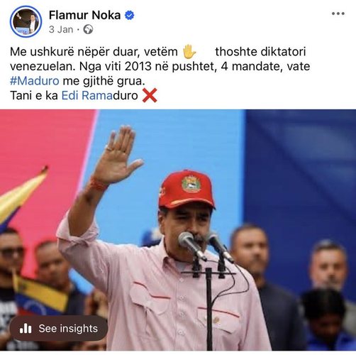 Mirëpo kjo deklaratë bie ndesh me statuset e numrit 2 të PD-së, Flamur Nokës, i cili në ekzaltim e sipër nga kapja e Maduros, shkruante se pas diktatorit të Venezuelës, rradhën e ka Ramaduro!