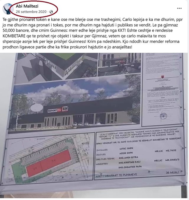 Për ata që nuk e dinë historinë: deri më sot, fabula e shpikur nga familja Berisha për të sulmuar gazetarin Carlo Bollino ka qenë se 4.000 metra katrorë truall, të marrë me qira nga shteti pas një konkursi publik krejt ligjor, për të ndërtuar mbi to godinën e Report TV-së (me shpenzime vetjake natyrisht), ishin në pronësi të familjes Begeja, pasardhës të Jamarbër Malltezit. “Me bujari”, sipas Berishës, familja Begeja paskësh dhuruar si “vakef” truallin bashkisë së Tiranës për të ndërtuar një shkollë, por Edi Rama, në vend të shkollës, ia paska “dhuruar” Bollinos për të ndërtuar televizionin.