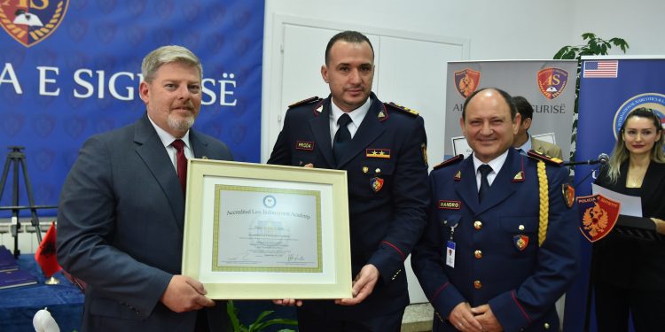Në një ceremoni të mbajtur në ambientet e Akademisë së Sigurisë ditën e sotme (22 maj), u dorëzua edhe certifikata e akreditimit të Kolegjit Profesional të Formimit Policor nga Shoqata Ndërkombëtare e Drejtorëve të Standardeve dhe Trajnimit të Agjencive të Zbatimit të Ligjit – IADLEST.