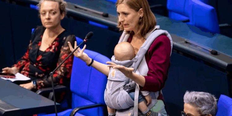 Me foshnjën në foltore: Deputetja gjermane bën histori në Bundestag
