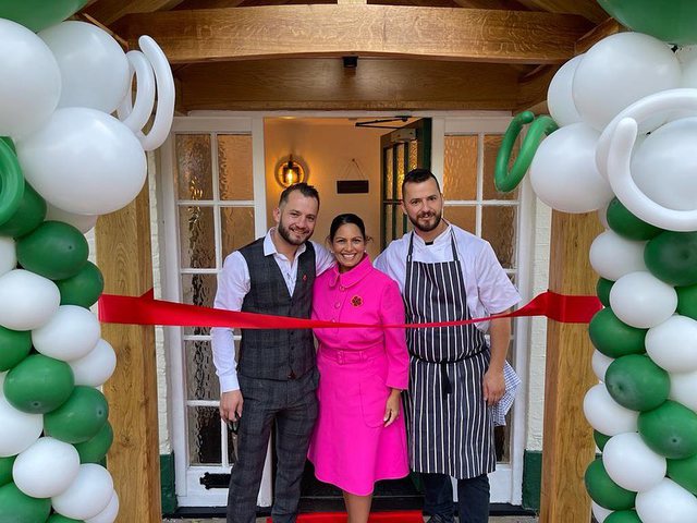 Ju ftoj të vizitoni barin e restorantin e tyre të klasit të parë me ushqime shumë të shijshme”, shkruan deputetja konservatore që është zgjedhur në zonën e Londrës që banohet kryesisht nga emigrantë. Patel ishte ministrja në detyrë që firmosi shpalljen non grata të Sali Berishës.