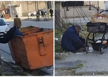 Skenë e trishtë! Burri qëndron dhjetë minuta duke rrëmuar në kazanin e plehrave!