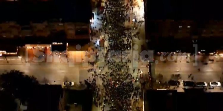 Report Tv sjell pamjet me dron nga bulevardi “Dëshmorët e Kombit”, pika e parë ku u pozicionua protesta e Partisë Demokratike.