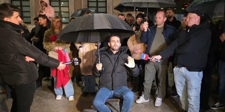 Adriatik Lapaj doli sërish mbrëmjen e sotme para Kryeministrisë pas daljes nga Spitali i Traumës, ku mori ndihmën dhe trajtimin e nevojshëm mjekësor pasi u godit në kokë nga ngrohësja që përdorte prej afro 1 muaji, gjatë aksionit të policisë për heqjen e materialeve që kreu i “Shqipëria Bëhet” kishte vënë para godinës qeveritare për të zgjatur protestën e tij.