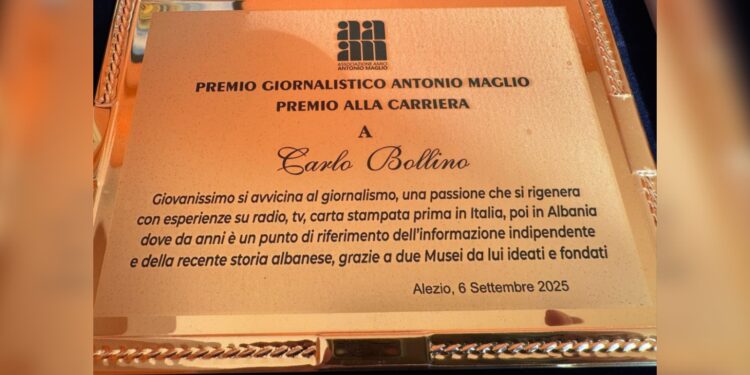 “Ai iu afrua gazetarisë në një moshë shumë të re, një pasion që u ringjall me përvoja në radio, televizion dhe media të shkruar, fillimisht në Itali, pastaj në Shqipëri, ku për vite me radhë ka qenë një pikë referimi për informacionin e pavarur dhe historinë e kohëve të fundit të Shqipërisë, falë dy muzeve që ai konceptoi dhe themeloi.” Me këtë motivacion, është nderuar këtë të shtunë në Itali me çmimin prestigjioz të gazetarisë “ANTONIO MAGLIO”, gazetari dhe botuesi Carlo Bollino.