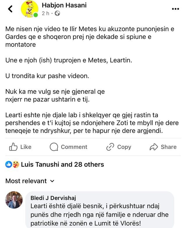 Ky i fundit e ka kritikuar veprimin e Metës, duke e vlerësuar gardistin si një punonjës shembullor.