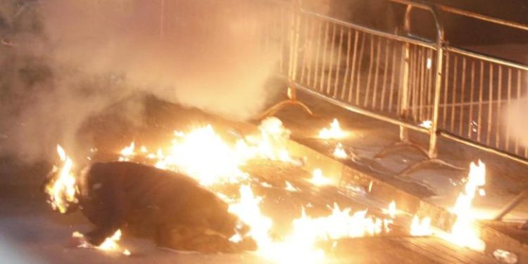 Një protestues në tubimin e Sali Berishës para Kryeministrisë është djegur nga flakët e molotovëve që janë hedhur drejt godinës qeveritare, pas fjalimit të kryedemokratit.
