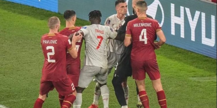 Skenat në Stadiumin “974” në Doha, ku Zvicra fitoi 3-2 për të siguruar një vend të 1/16-tës në një ndeshje që u zhbllokua gjatë pjesës së dytë, ngrenë pikëpyetje në lidhje me drejtimin e FIFA-s dhe në veçanti tolerancën e saj të dukshme ndaj shenjave fyese.