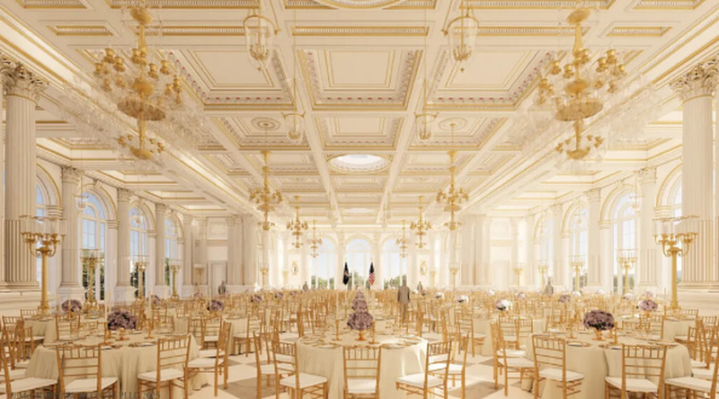 Një nga projektet më madhore është ndërtimi i një salle balloje në East Wing, me sipërfaqe 90 mijë metra katrorë. Trump e ka prezantuar këtë hap si të domosdoshëm për pritjen e liderëve botërorë, ndërsa kostoja e projektit pritet të kapë 200 milionë dollarë. Ai ka premtuar se shpenzimet do të mbulohen nga donatorë privatë dhe jo nga taksat e qytetarëve amerikanë, gjë që ka shkaktuar debate për transparencën dhe etikën qeveritare. Pamjet e publikuara tregojnë një dizajn që ngjan shumë me sallat e resortit Mar-a-Lago në Palm Beach. Punimet e shembjes së pjesës së krahut lindor nisën që në fund të tetorit.