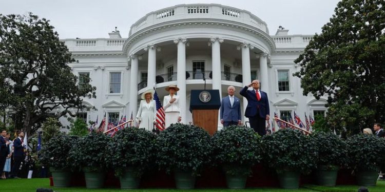 Menjëherë pasi Mbreti Charl III përfundoi takimin e tij me presidentin amerikan Donald Trump, Shtëpia e Bardhë ka ndarë në rrjete sociale një foto, ku shihen të dy duke bashkëbiseduar dhe të qeshur, ndërsa vendos mbishkrimin “Dy mbretër”.